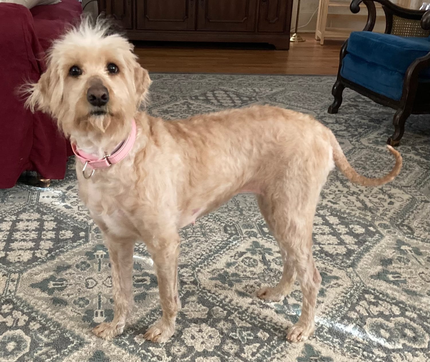 For months, I had been searching for a medium-sized, fuzzy-faced girl to welcome into my home—and my life. After reaching out, the shelter sent more photos. They told me she had been picked up as a stray on a very cold January day, weighing only 17 lbs. Her coat was matted and covered in urine and feces and had to be shaved. She spent the first week being treated for severe dehydration and malnutrition. Despite her rough shape, I applied to adopt her before I went to bed that night.